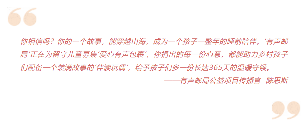 在国庆中秋双节来临之际,在收获与团圆的美好时刻,陈思斯担任志鲲基金会“有声邮局”公益项目传播官,携手王金珝兮、岱溪、付宸心、乌嘉乐、陈浩然、陈浩瀚六位小童星,以实际行动为乡村留守儿童助力,传递爱与温暖!
