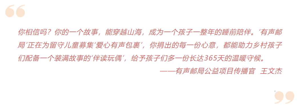 此次担任 “有声邮局” 公益项目传播官,王文杰以自身影响力为项目发声,为乡村留守儿童录制了公益视频,呼吁社会共同关注留守儿童的教育与情感需求。(场地赞助:别院里·私汤别墅酒店、Villa No.8 Park Bar ·别院里雪茄)