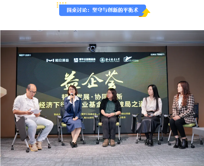 圆桌讨论环节,北京五八公益基金会执行秘书长郭亚琴、德勤公益基金会秘书长申雅静、山西省仁爱天使公益基金会理事长商维、和众泽益副主任刘永莉展开深度对话。