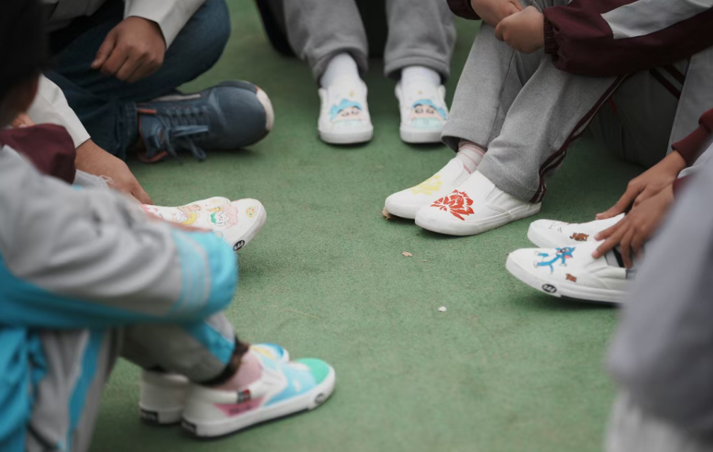 活动伊始,志愿者们为孩子们带来了精心准备的礼物。一双双由SABIC员工亲手绘制的、独一无二的帆布鞋,不仅承载着创意与心意,更寄托着对孩子们脚踏实地、勇敢追梦的期许。崭新的羽毛球拍、乒乓球拍、足球、篮球等体育用品,以及书包、科学实验盒子、彩色马克笔等丰富的学习用品,被郑重交到师生手中,现场洋溢着喜悦与期待。
