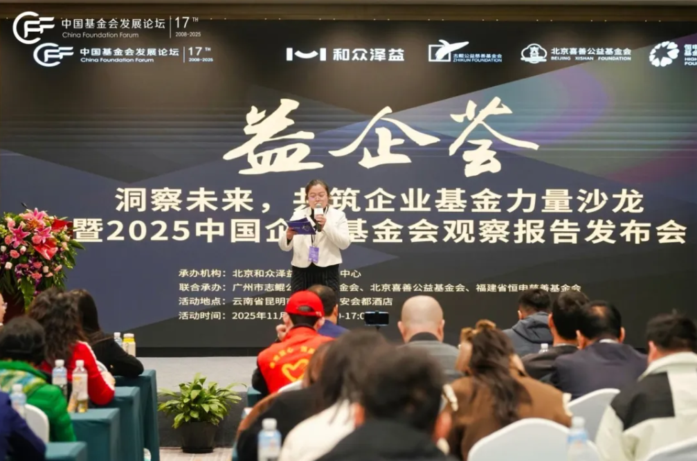 广州市志鲲公益慈善基金会(以下简称“志鲲基金会”)由常务副秘书长白鸥率团参与本次行业盛会,通过主办平行论坛、亮相公益市集、广泛交流互鉴,深度融入行业对话,展现基金会的专业思考与实践成果,在滇池之畔书写公益实践新篇。 本届论坛的“公益市集”汇聚了二十余家优质公益参展方,志鲲基金会亦在其中设立了特色展位。在市集现场,志鲲基金会向与会同仁展示了其自成立以来,特别是2025年获得公开募捐资格的发展历程,重点介绍了其在推动“志愿服务行业赋能计划”、构建行业生态支持体系方面的探索与成果。 展位成为了理念碰撞、资源对接与经验分享的活跃节点,为志鲲基金会与各界伙伴探讨合作、共谋发展提供了窗口。 作为年会的重要组成部分,由志鲲基金会与北京和众泽益公益发展中心、北京喜善公益基金会、福建省恒申慈善基金会联合承办的“洞察未来,共筑企业基金力量——2025中国企业基金会观察报告发布会”平行论坛于11月22日成功举办。