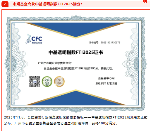 2025年,广州市志鲲公益慈善基金会用专业与坚守诠释了“聚公益之力,行专业之效,达鲲鹏之志”的使命担当,让每一份善意温暖落地,也收获了社会各界的广泛认可。